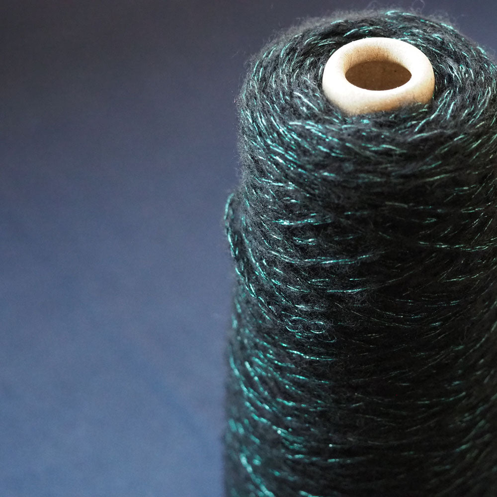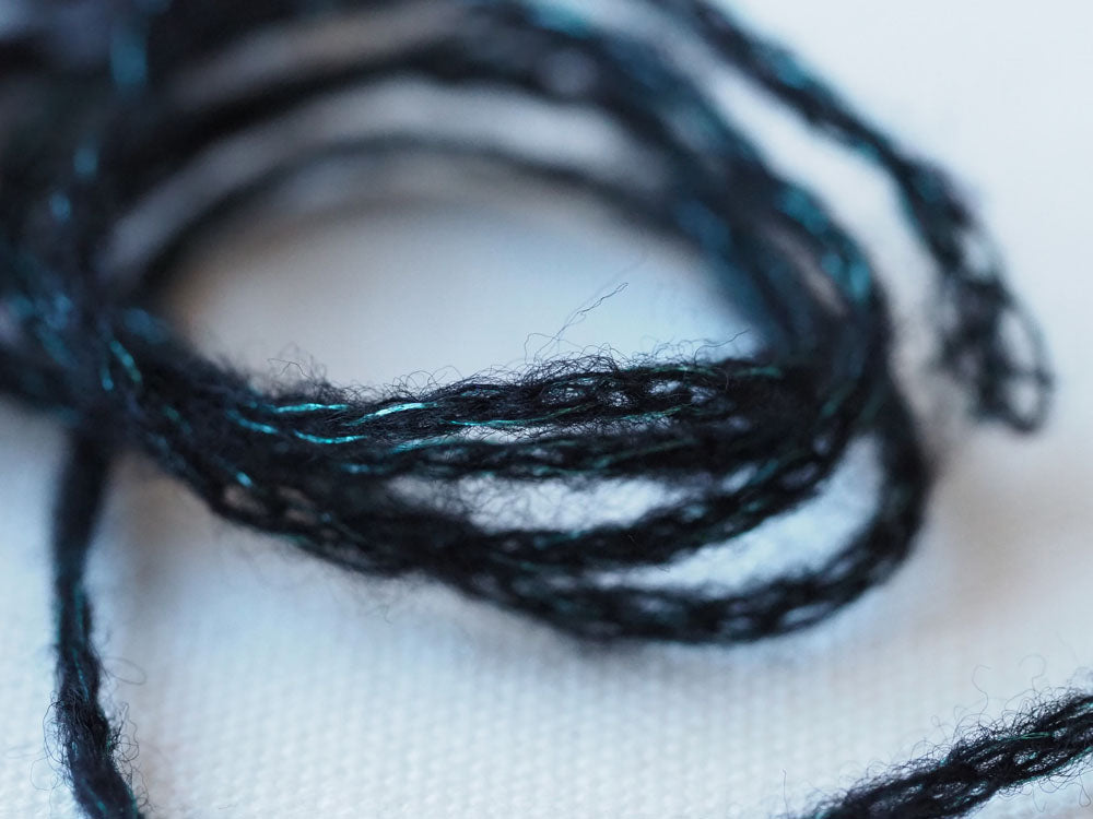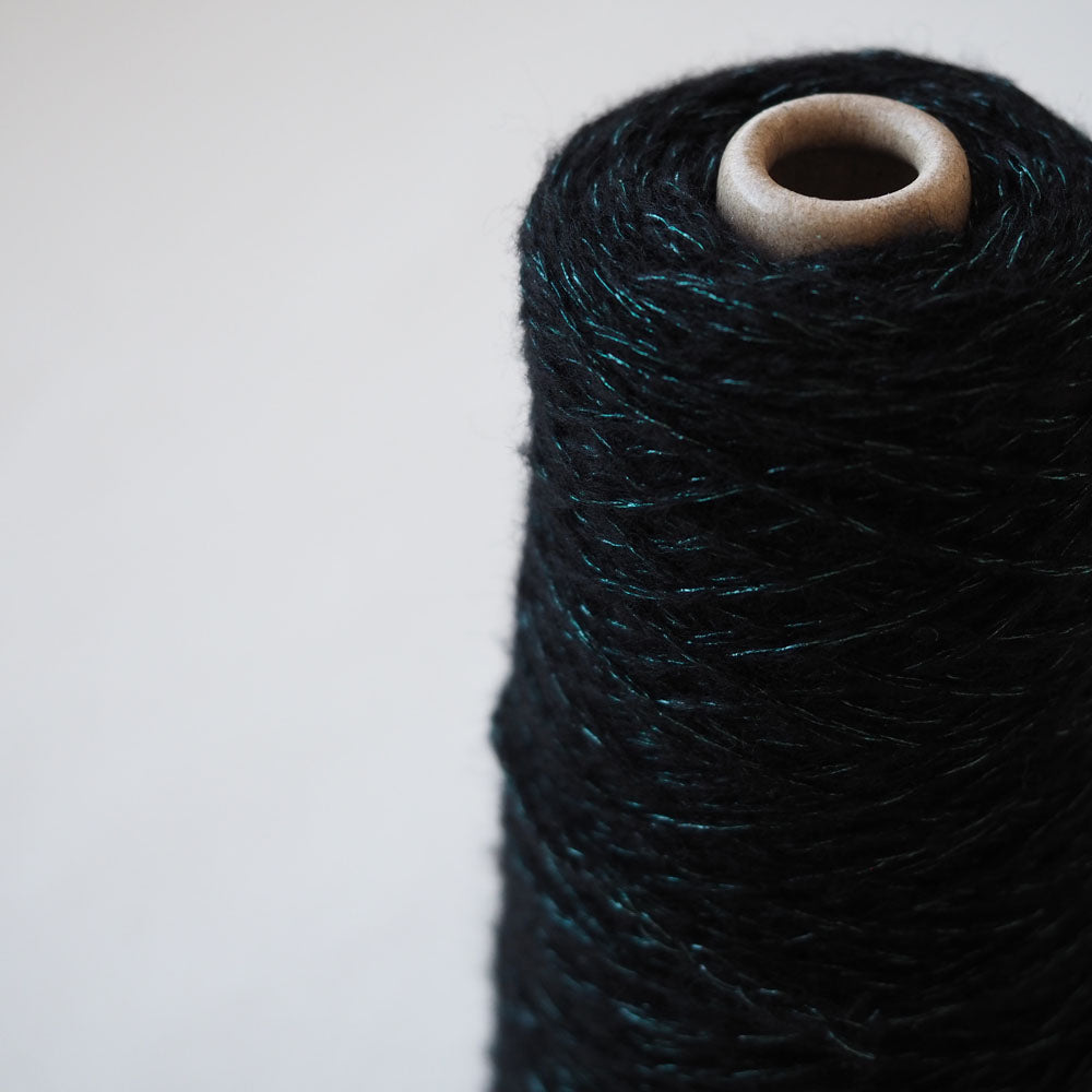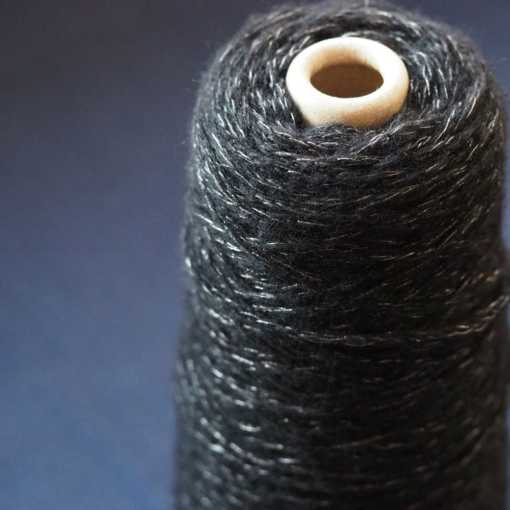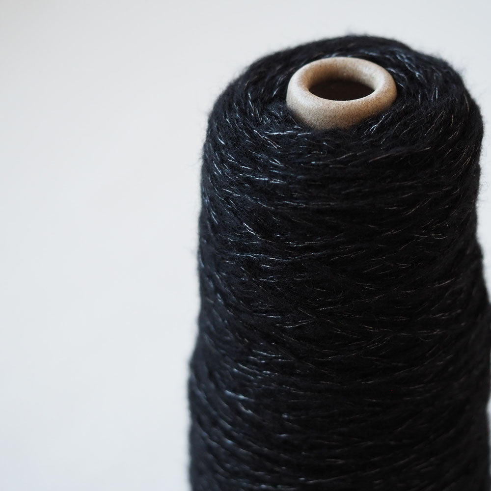 上質なアルパカ混タム糸(ブラック)と繊細な極細のラメをふんわりとリリヤーン加工しました。