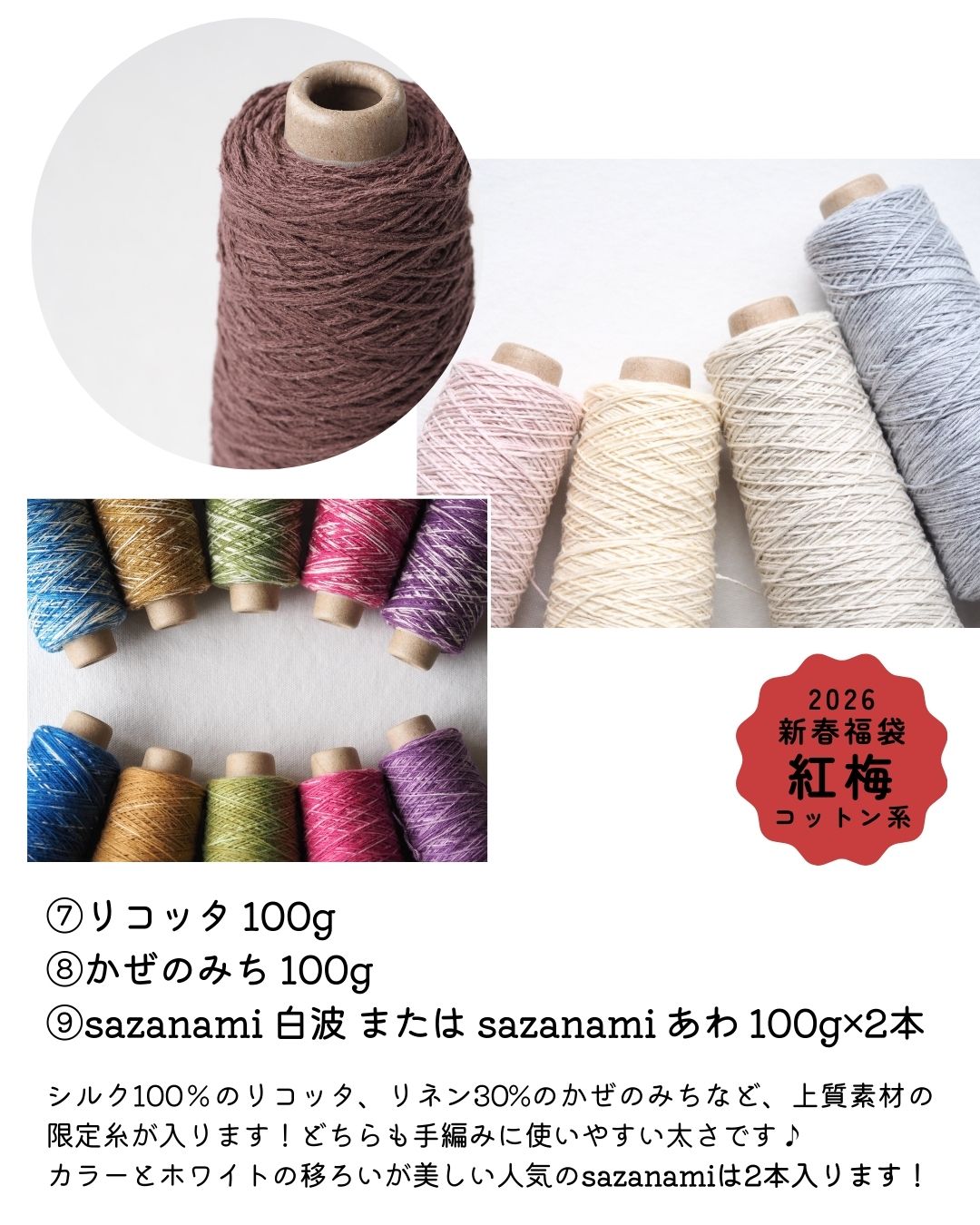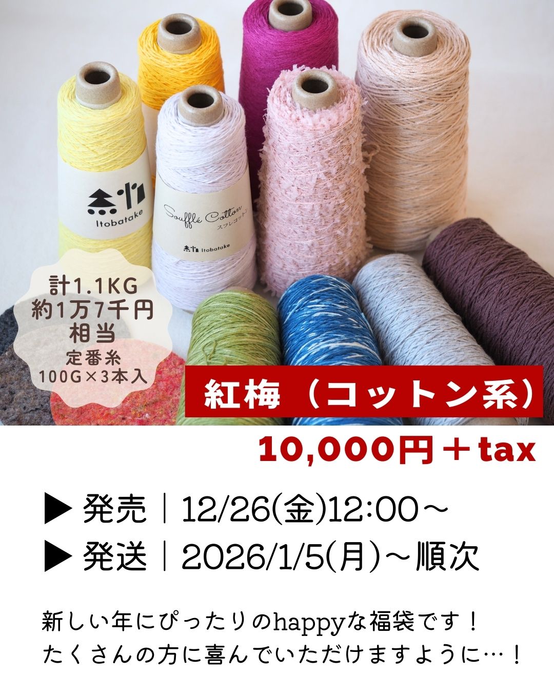 新しい年にぴったりのhappyな福袋【紅梅(コットン系)】です。