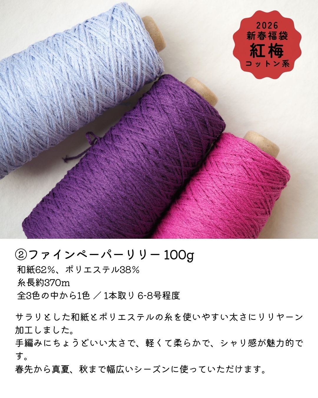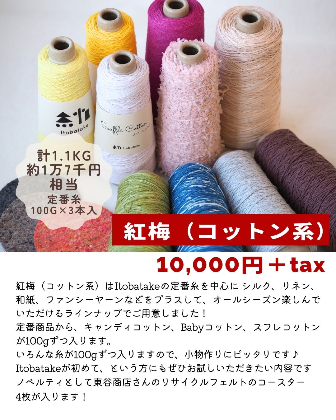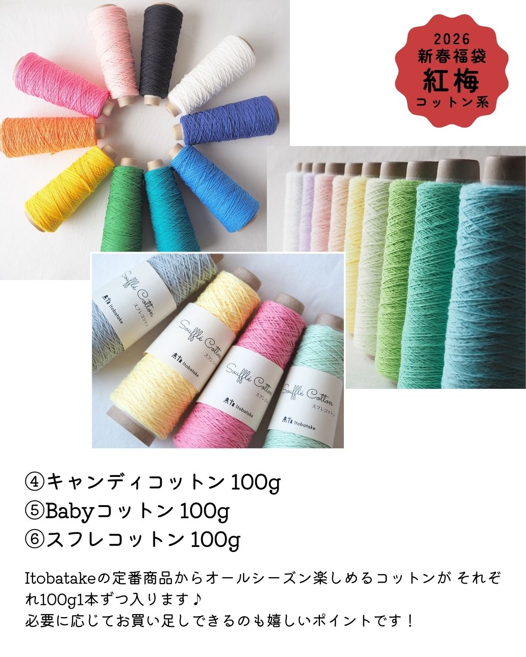 Itobatakeの定番糸を中心に、シルク、リネン、和紙、ファンシーヤーンなどをプラスして、オールシーズン楽しんでいただけるラインナップでご用意しました!