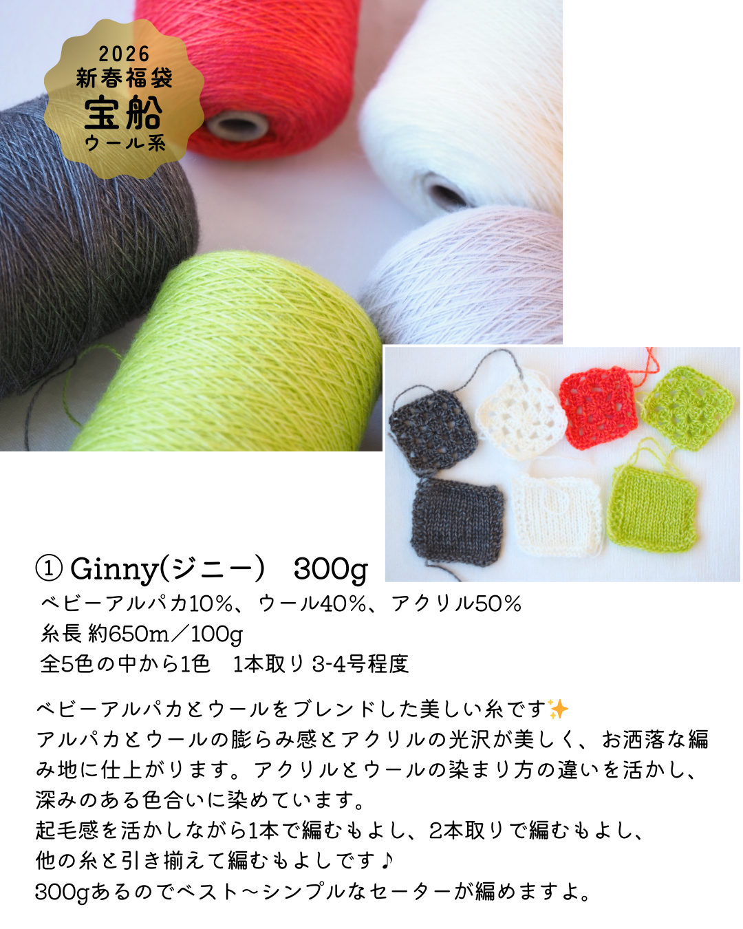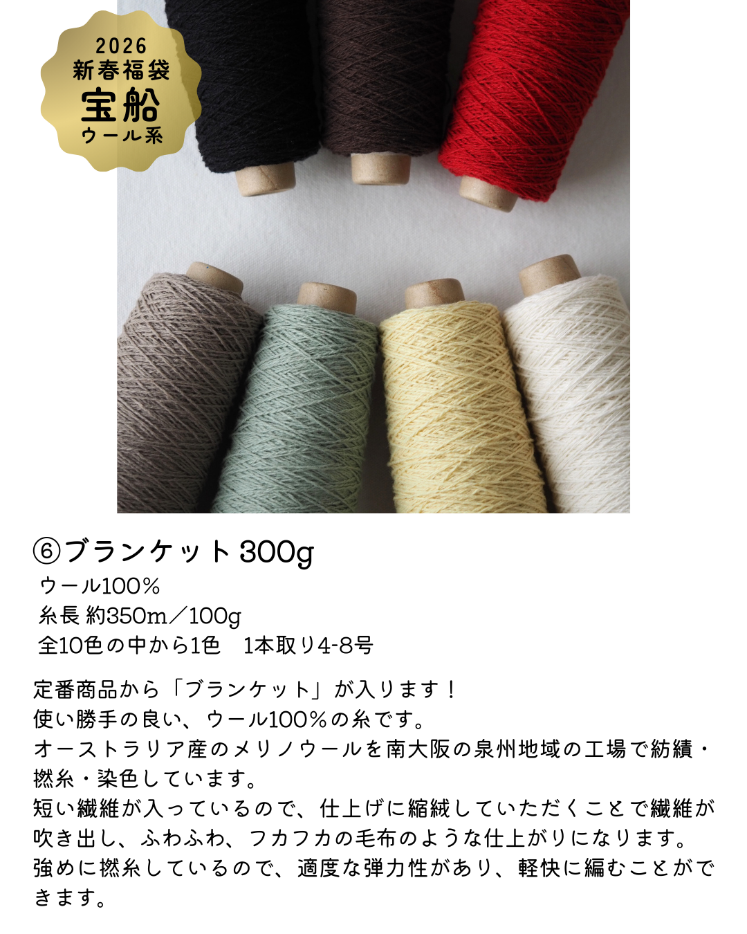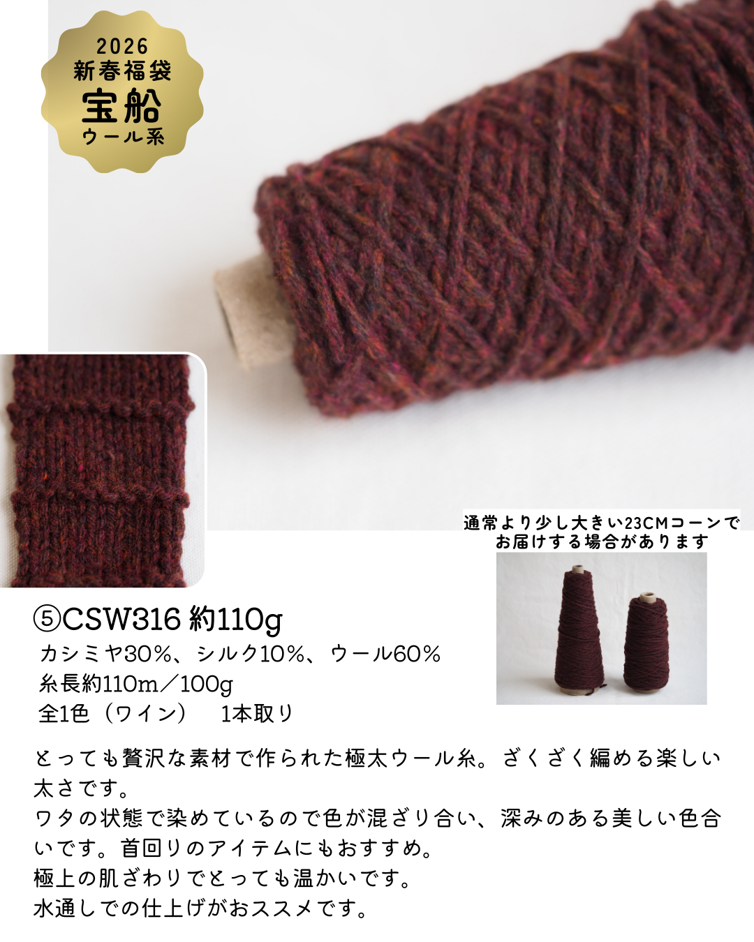 福袋のために特別にセレクトした糸を贅沢に組み合わせました。