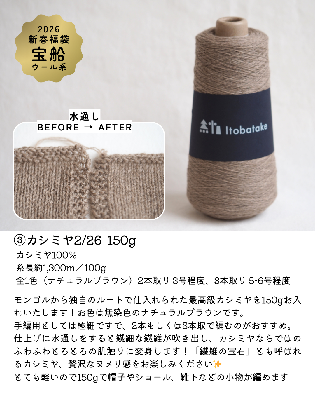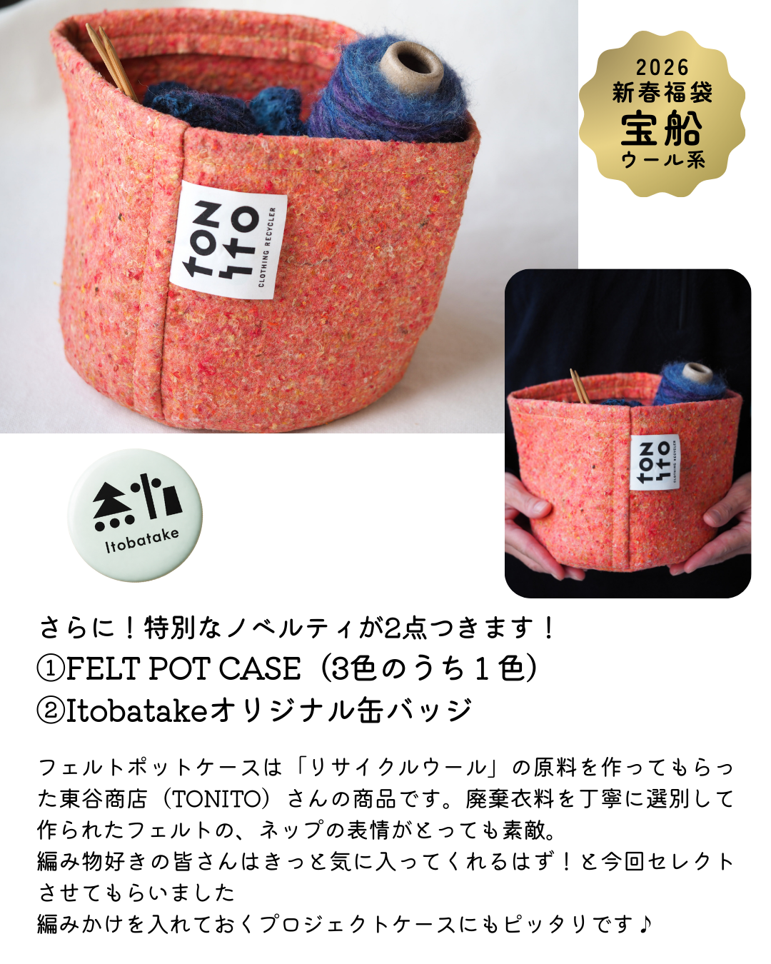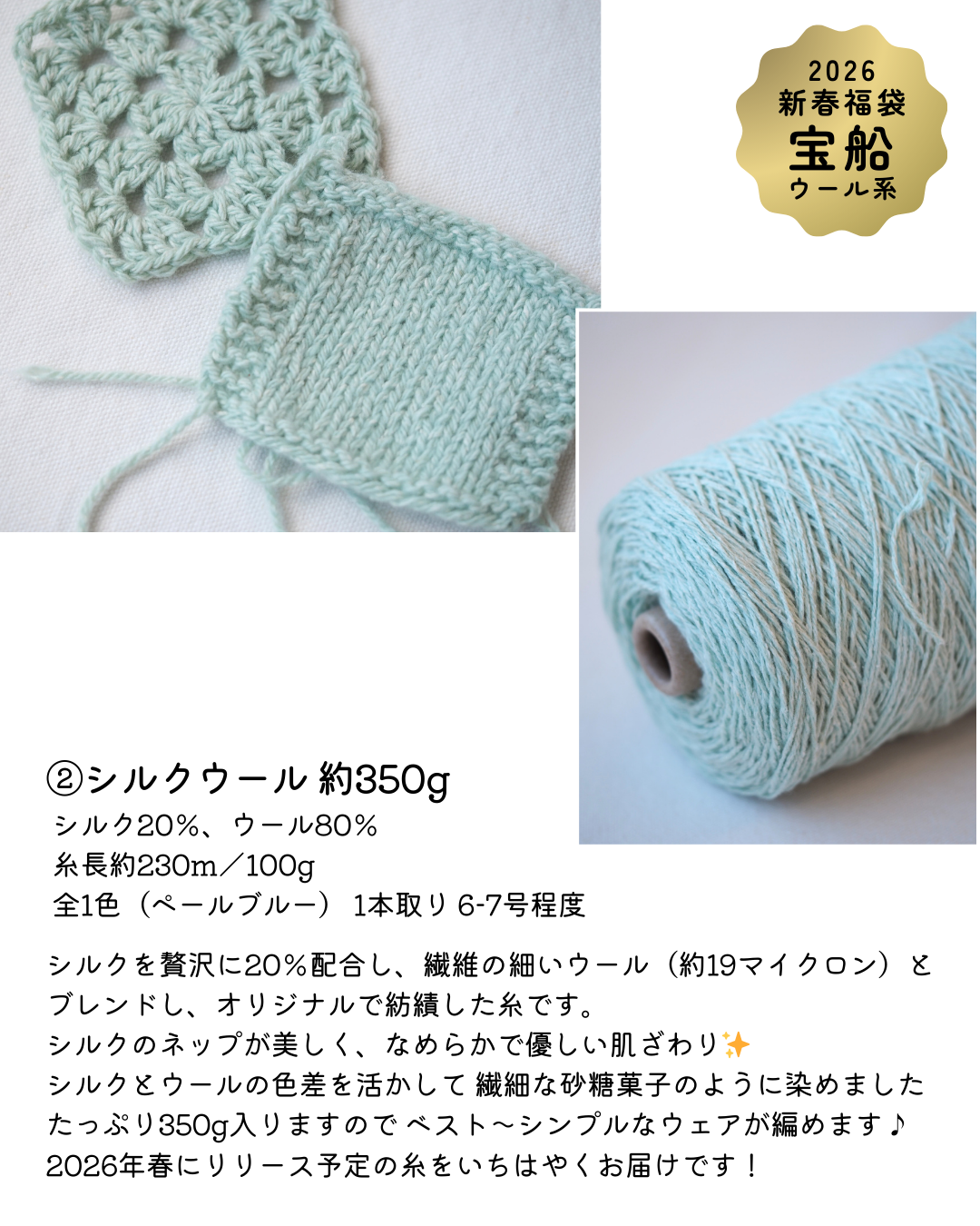 福袋のために特別にセレクトした糸を贅沢に組み合わせました。