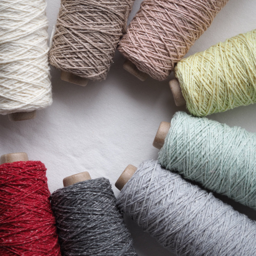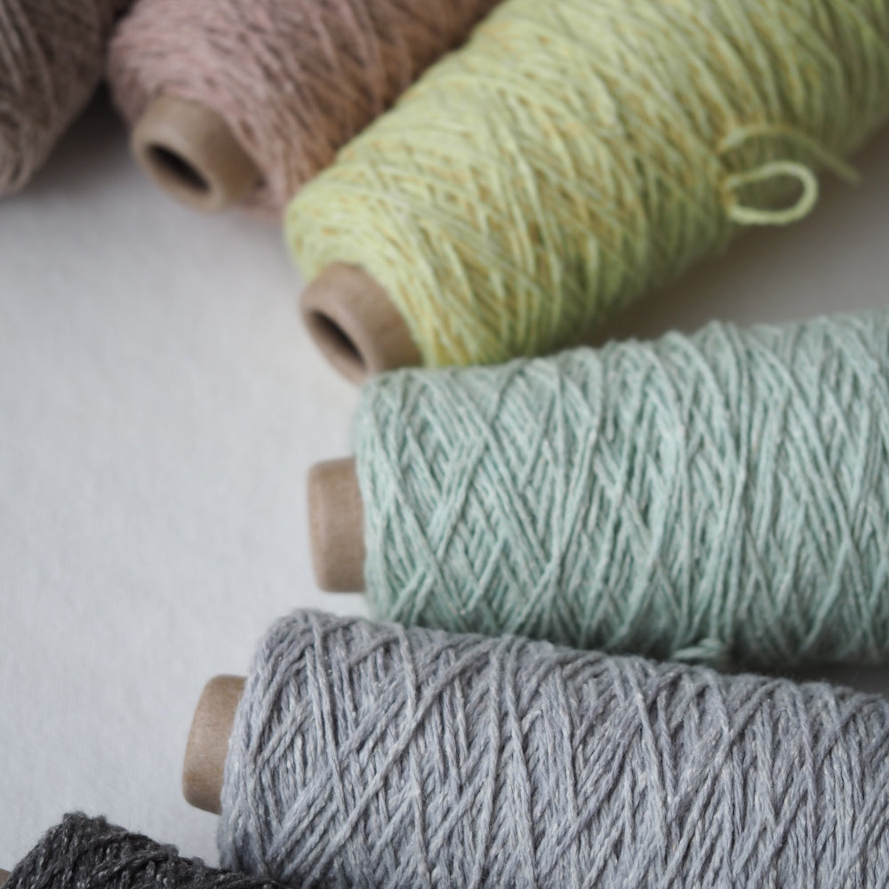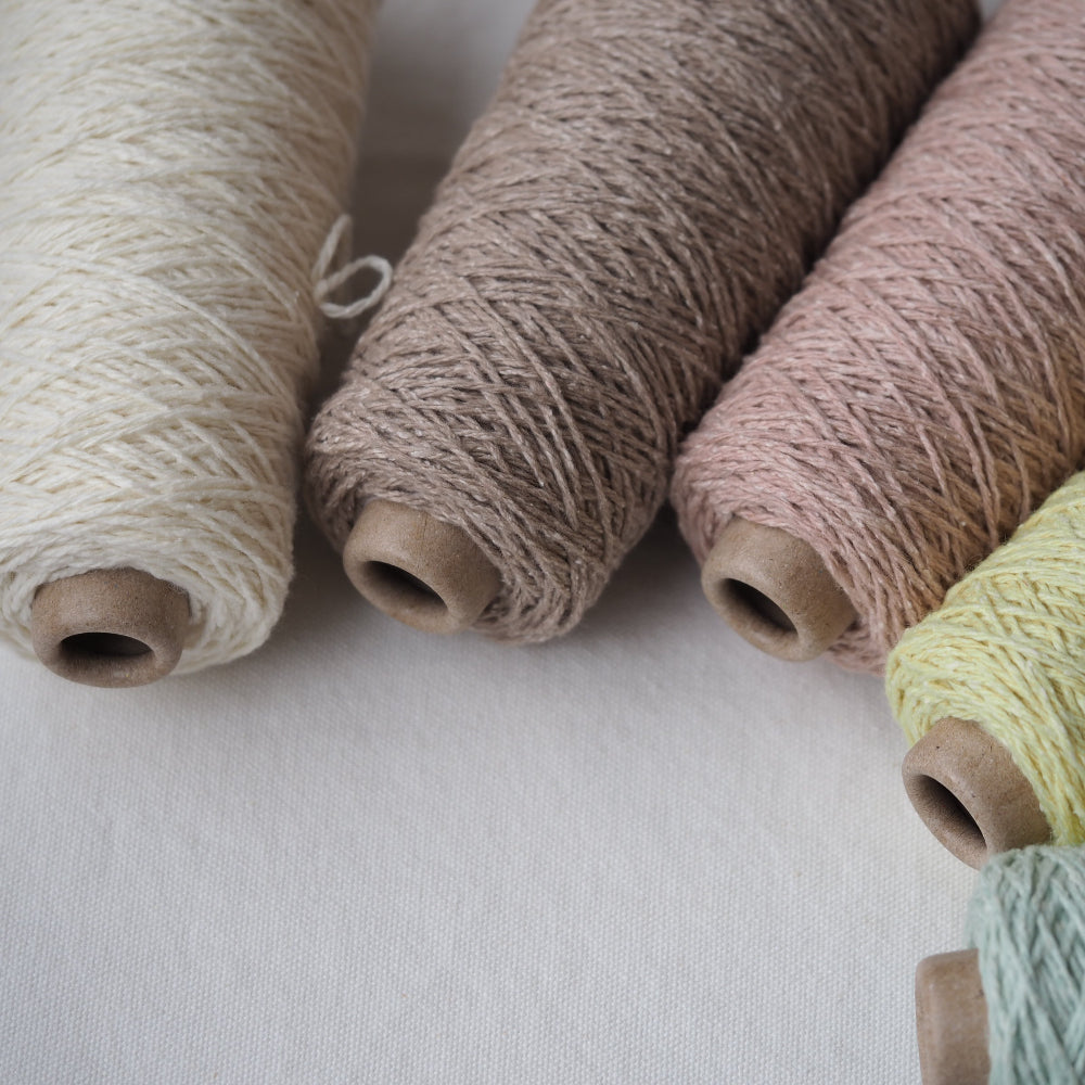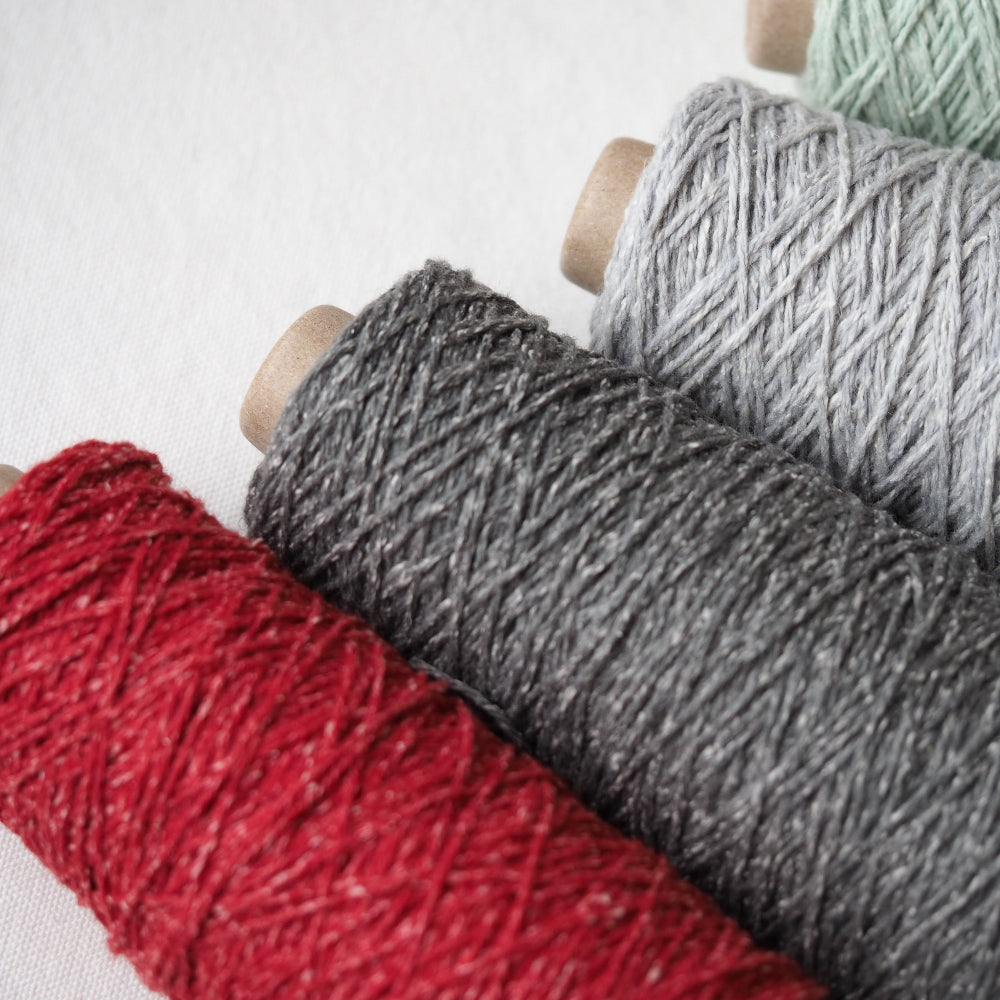 シルクを贅沢に20%配合し、繊維の細い しなやかなウール(約19マイクロン)とブレンドして、オリジナルで紡績した糸です。