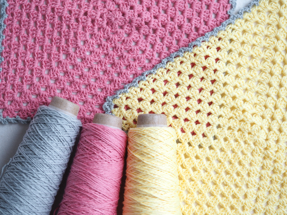 1枚目「グラニースクエアのニッタオル」はYouTubeで公開していますので、ぜひご覧になってお持ちの糸で挑戦してみてください。